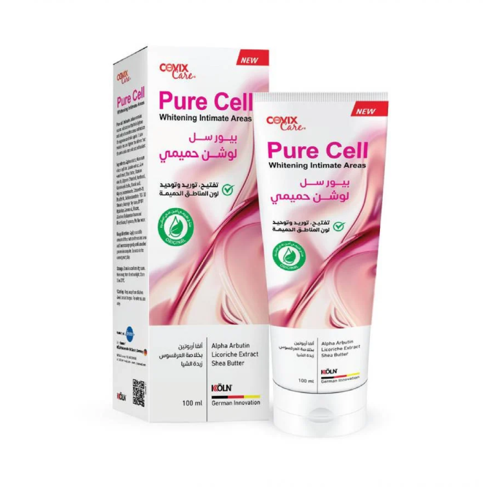 بيور سل لوشن للمناطق الحميمية يحتوي على مواد طبيعية تساعد على تفتيح وتوحيد لون المناطق الحساسة وتقلل من مظاهر تبقع الجلد كما يرطب ويشد الجلد بحيث تبدو المنطقة أكثر حيوية.