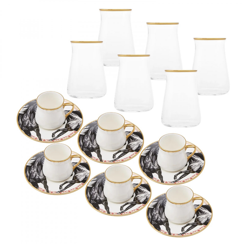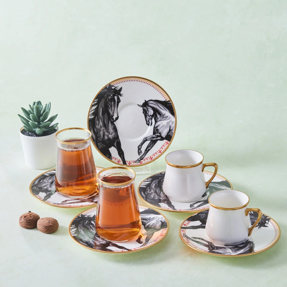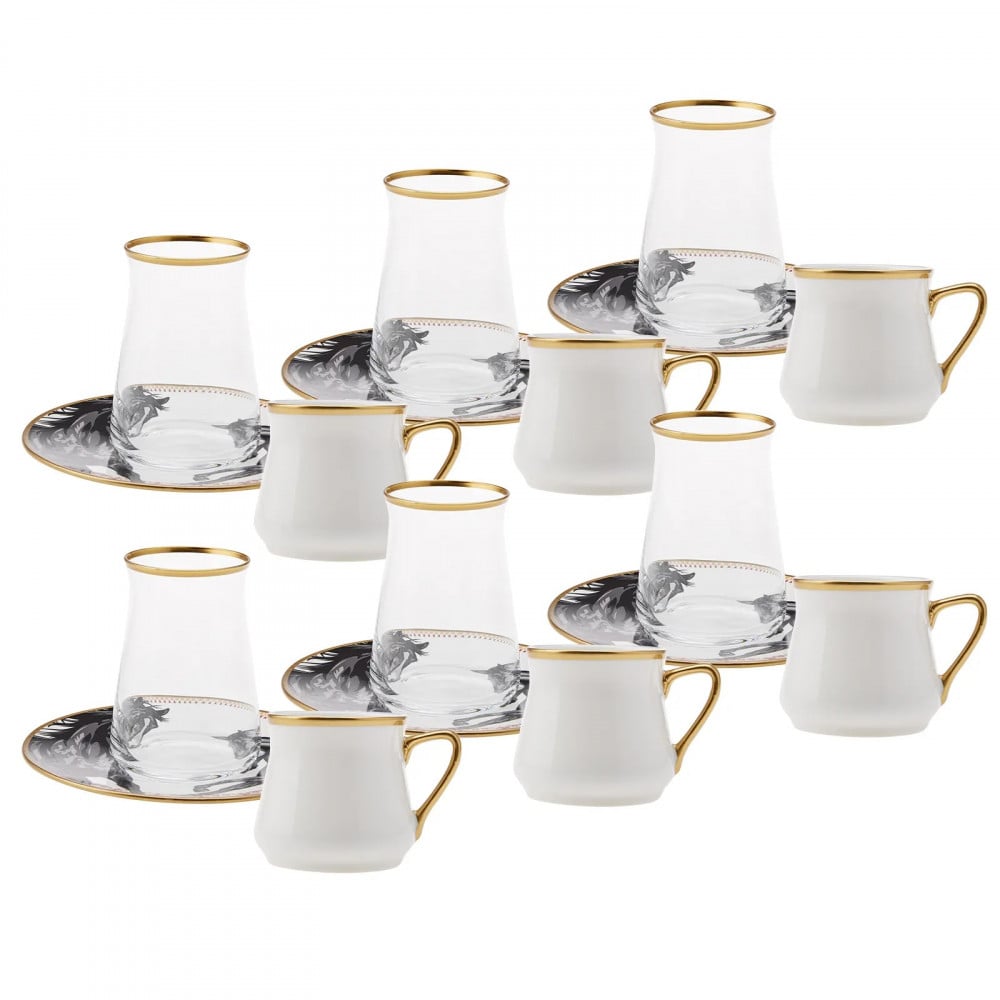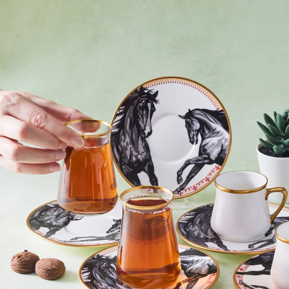 طقم إستكانات شاي وفناجيل قهوة تركية 18 قطعةماركة كاراجا التركية ذات الجودة الفائقة والتصاميم الحصريةالمحتويات:6 استكانة شاي 150 مل6 فناجيل قهوة 100 مل6 صحونصناعة تركية