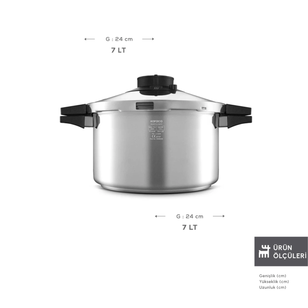 تعتبر قدور الضغط من أكثر أواني الطهي العملية المستخدمة في الطهي. في المقام الأول ، تُستخدم هذه الأواني ، التي تتيح طهي الأطعمة الأكثر صعوبة والتي تستغرق وقتًا طويلاً في وقت أقصر بكثير ، لطهي العديد من الأطعمة. قدر ضغط كاراجا هذا بسعة 7 لترات الذي يستخدم قوة البخار لطهي الطعام بسرعة ، يحافظ على توازن الماء في الأطباق. بفضل الطهي عالي الضغط ، يساعدك هذا المنتج على توفير الوقت والطاقة. يوزع الحرارة بالتساوي على جميع الجوانب ويسمح لك بالحفاظ على نكهة وجباتك. هذا المنتج ، الذي يوفر استخدامًا طويل الأمد ، متين للغاية لأنه مصنوع من الفولاذ المقاوم للصدأ.