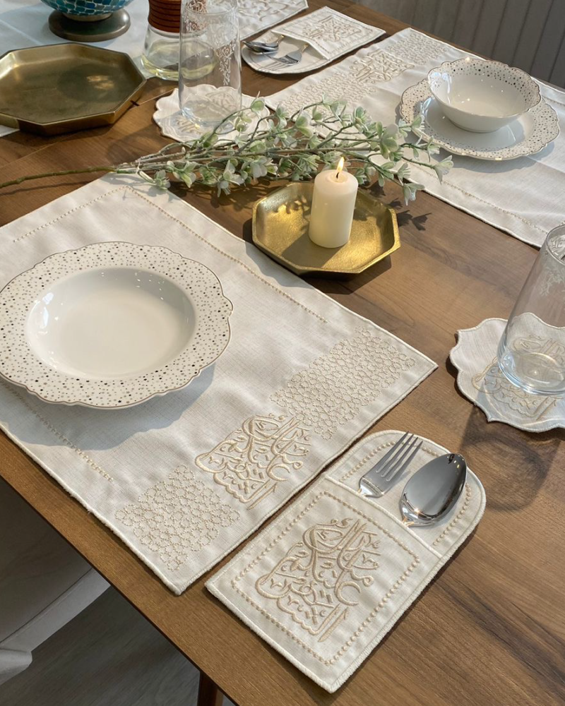 طقم مفارش سفرة مطرزة فائقة الفخامة ١٩ قطعة يكفي ل ٦ أشخاص
