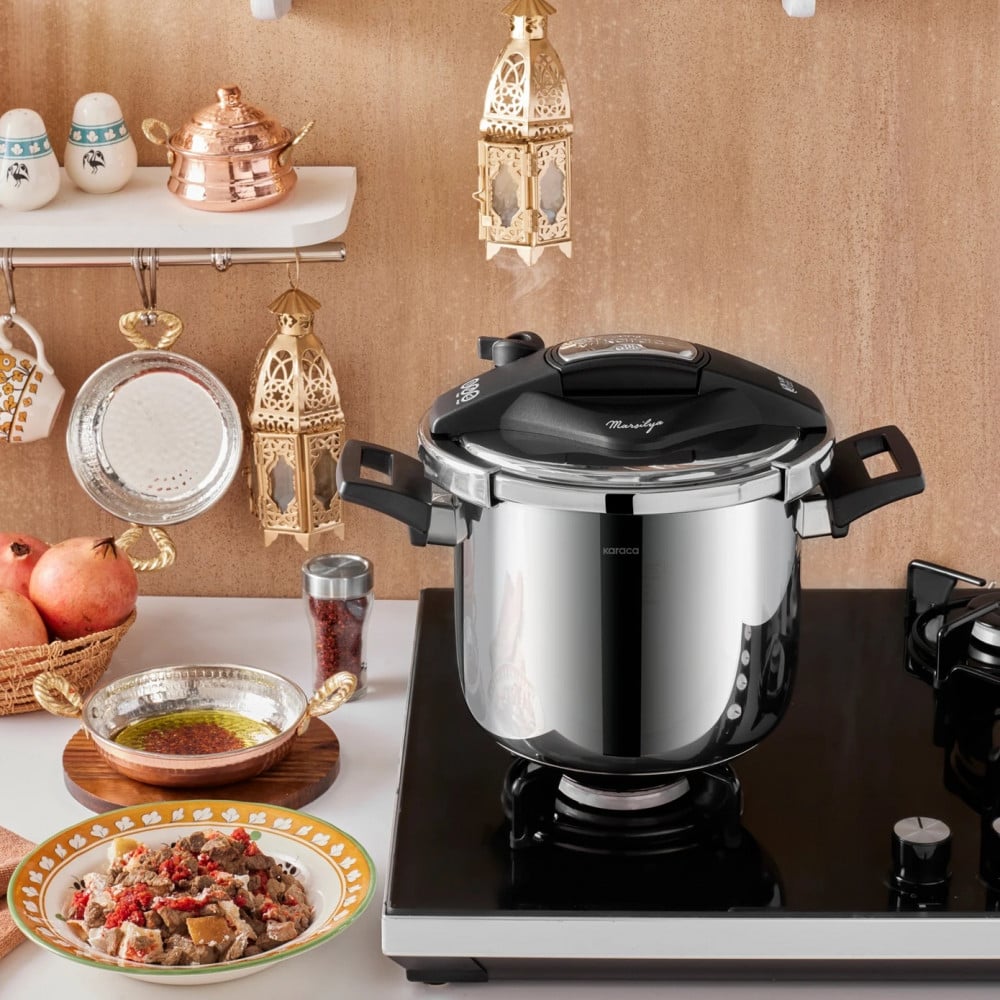 Pressure cookers are one of the most practical cookware used in cooking. Primarily, these pots, which allow cooking the most difficult and time-consuming foods in a much shorter time, are used to cook many foods. Karaca Marseille Pressure Cooker 7 Liter Capacity. This pot, which uses the power of steam to cook food quickly, maintains the water balance in the dishes. Thanks to high pressure cooking, this product helps you save time and energy. It distributes heat evenly to all sides and allows you to preserve the flavor of your meals. This product, which provides long-term use, is very durable because it is made of stainless steel.